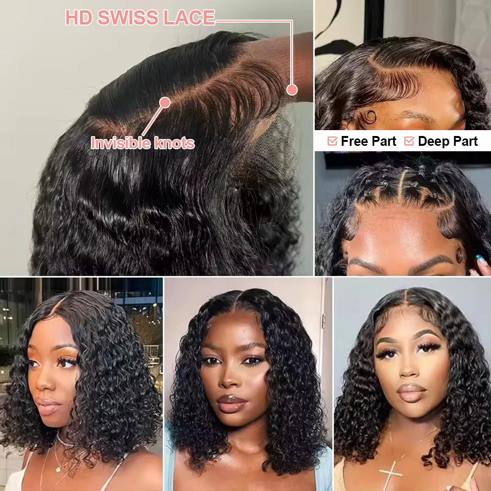 Short Bob Human Hair 250 Density Lace Front Wigs Hair 13×4 13×6 Water Wave 7×5 Glueless Wig Human Hair Deep Curly Wigs for Women