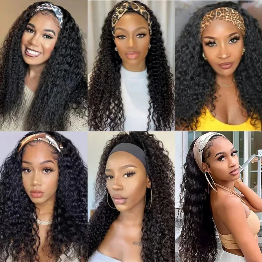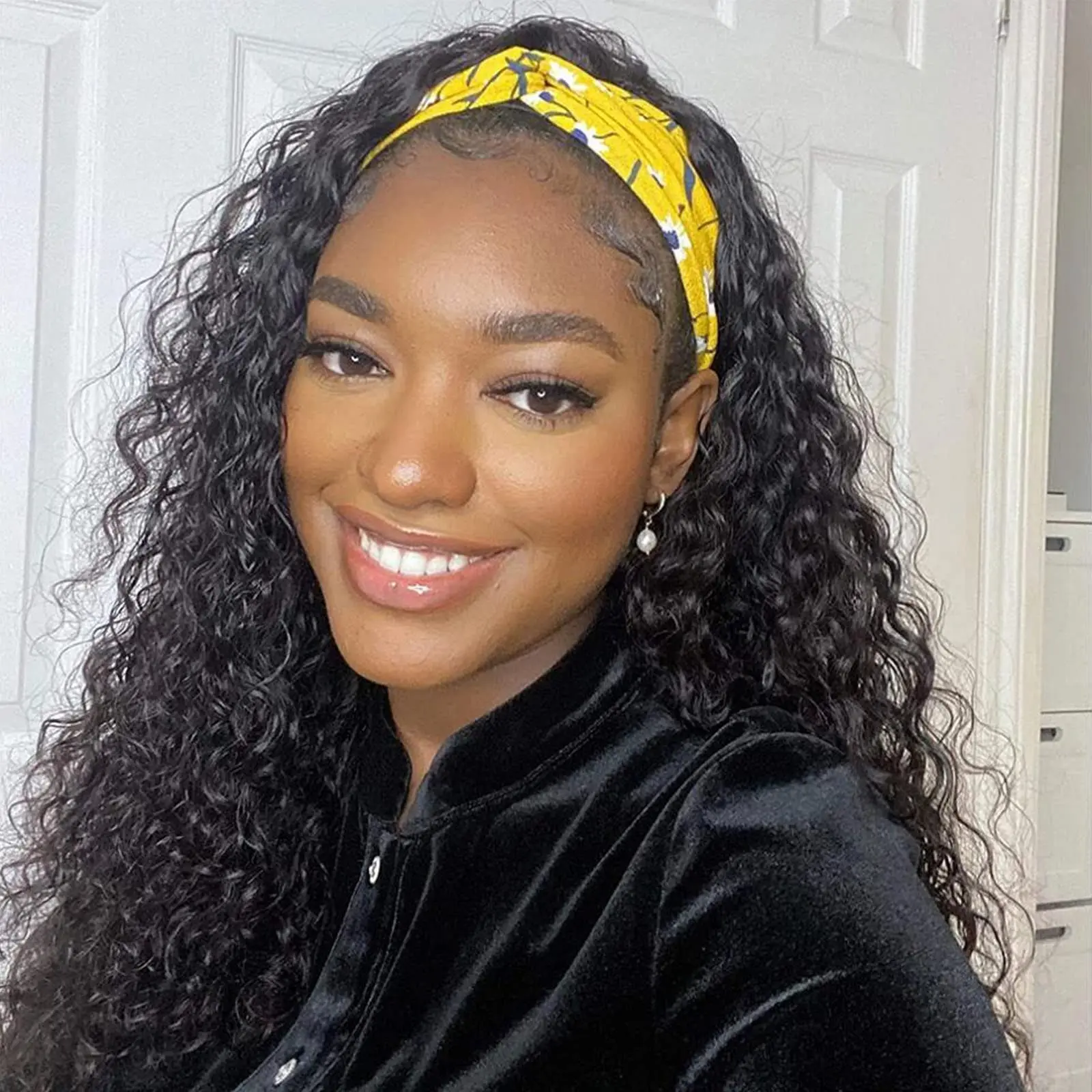 180% Density Water Wave Headband Wig Brazilian Remy 100% Human Hair Wigs For Women Natural Color Machine Made Human Hair Wig