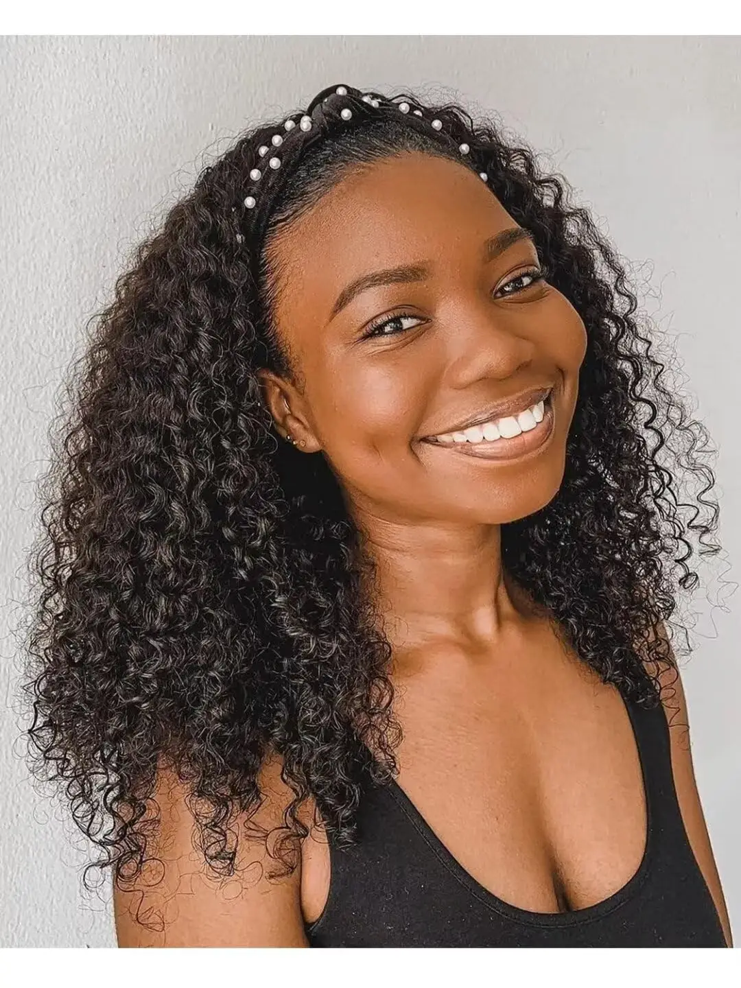 Curly Headband Wig Human Hair 10-24 Curly Hair Headband Wig Indian Virgin Machine Made Human Hair Wigs With Headband