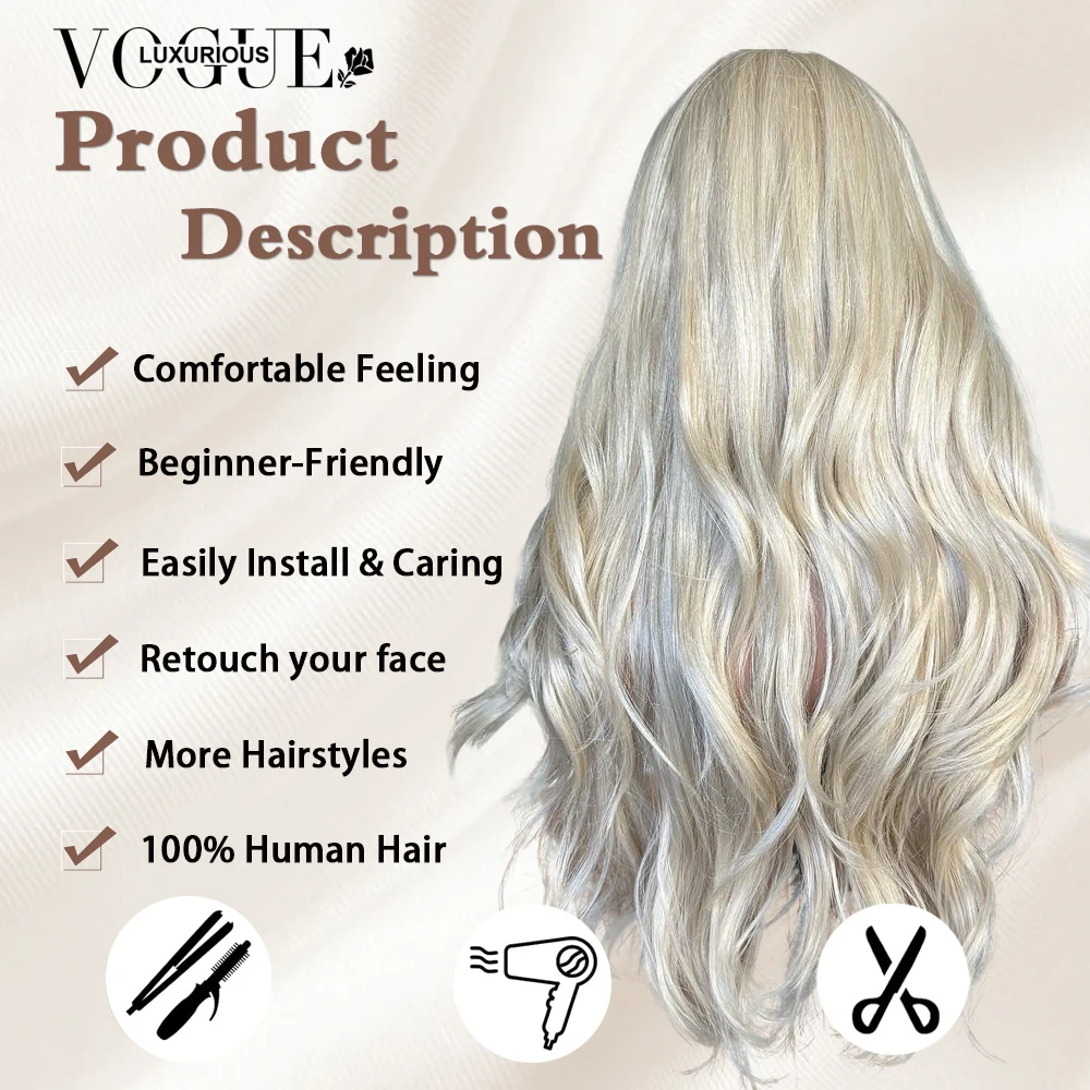LUX VOGUE Platinum Blonde 100% Human Hair Wig With Bangs 13×6 Transparent Upgrade Lace Front Wig 260% Density Salon-Quality Wi