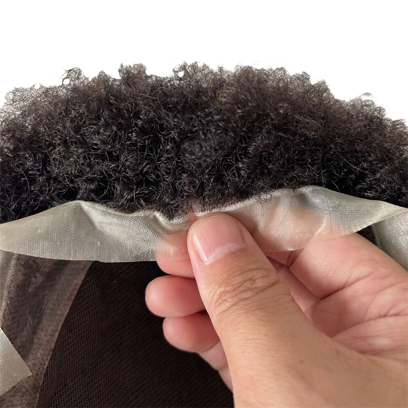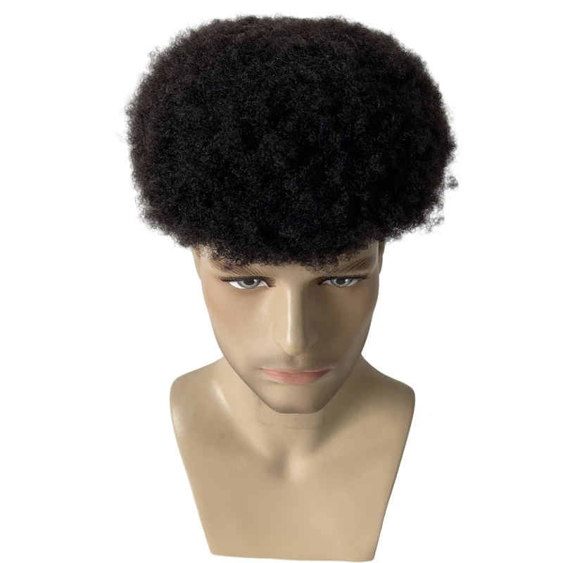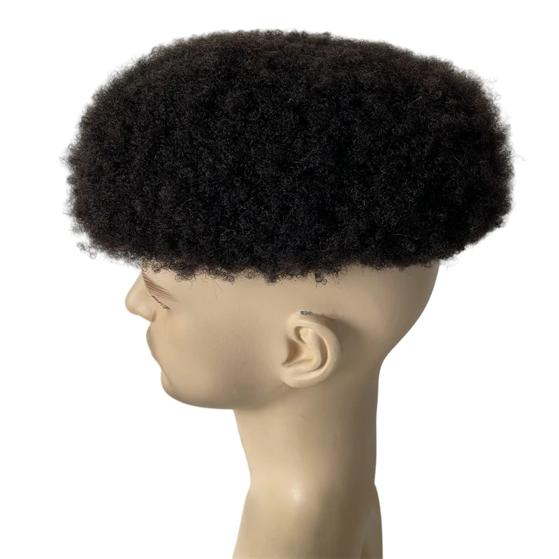 Brazilian Virgin Human Hair Systems #1b Black Color 4mm Root Afro AUS Toupee 8×10 Lace with PU Unit for Black Men