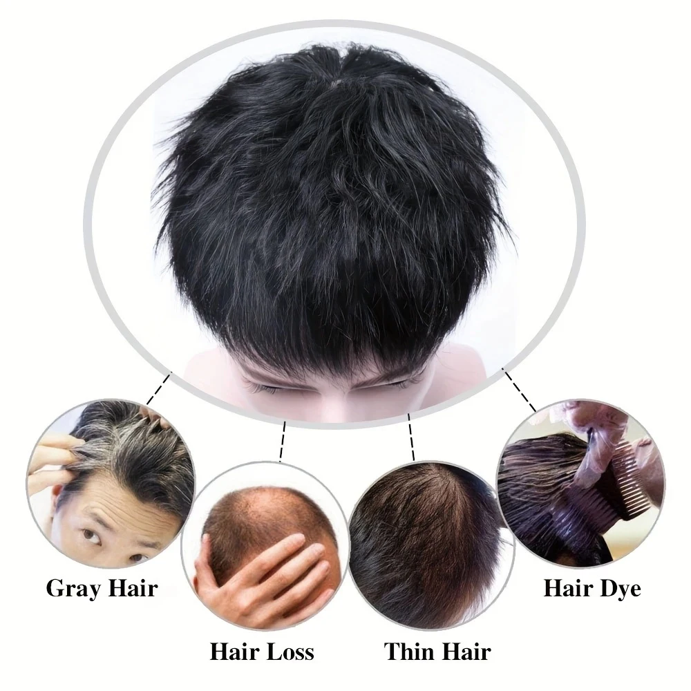 Men’s Human Hair Wig Natural Look Baldness Hairpiece For Hair Loss Going Bald Compatible with All Hair Replacement